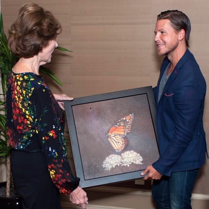 Drew Ernst presents Laura Bush with painting to be hung in Presidential Library