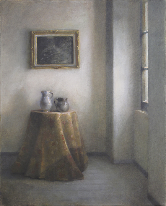 She worked for several years in a fine arts foundry casting bronze and at a display company where she acquired experience in a multitude of materials. She is especially interested in traditional methods of oil painting and her abiding love is the art of the Renaissance and Greek vase painting.