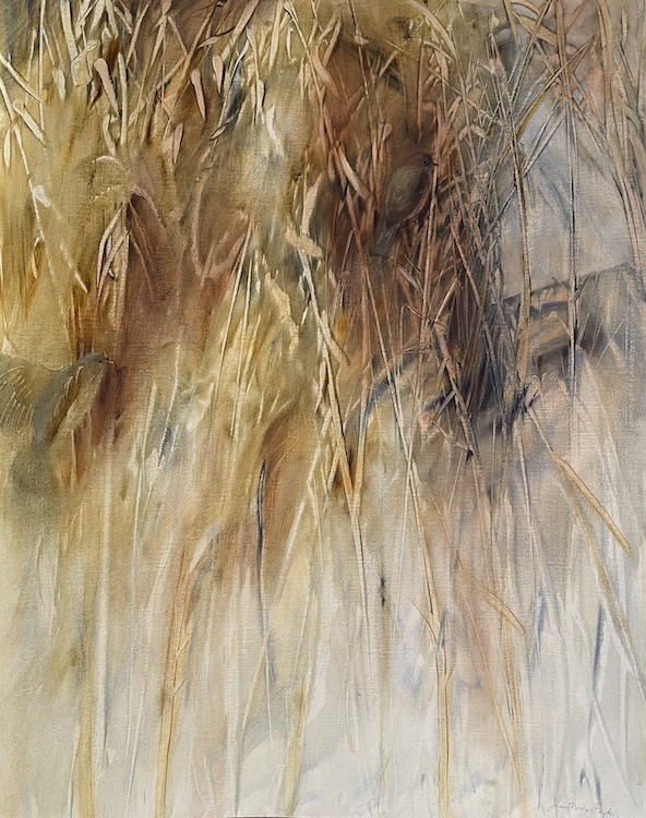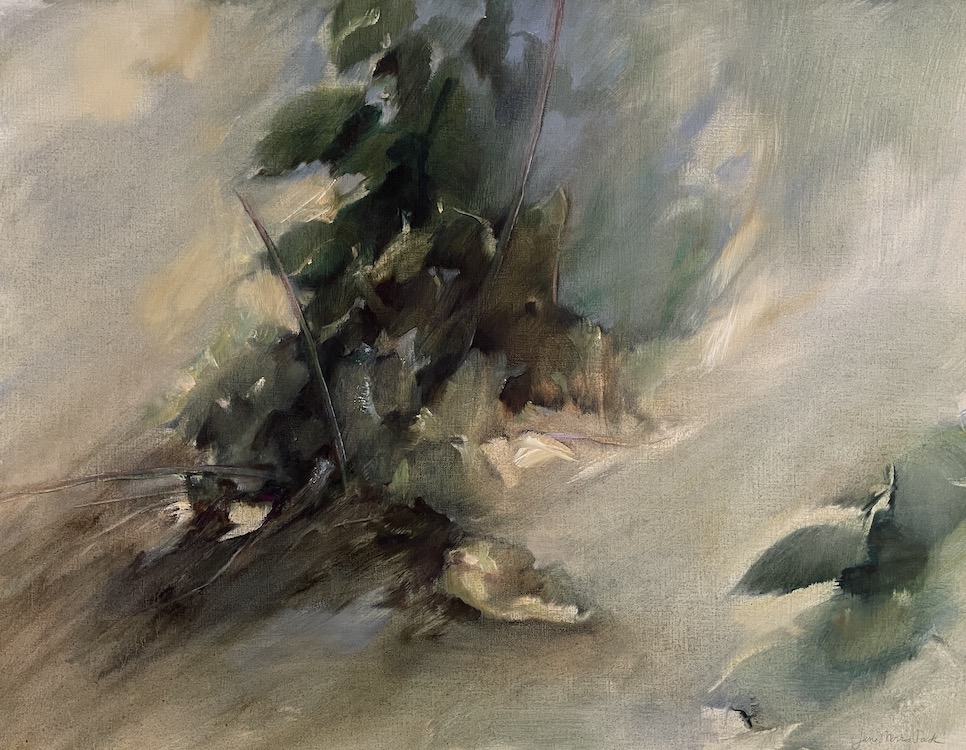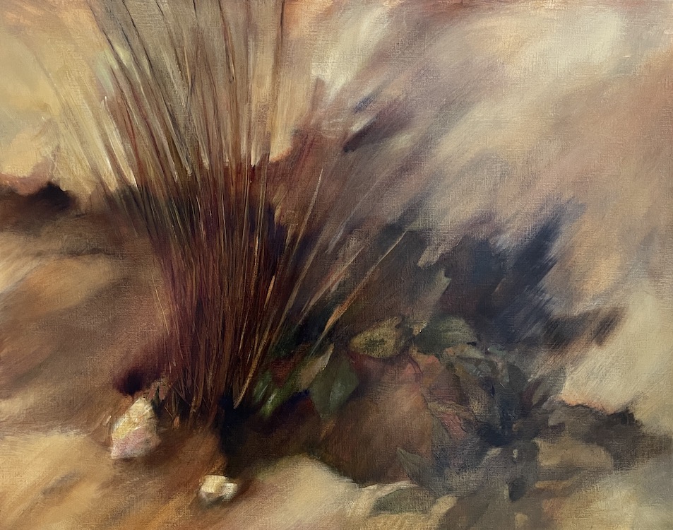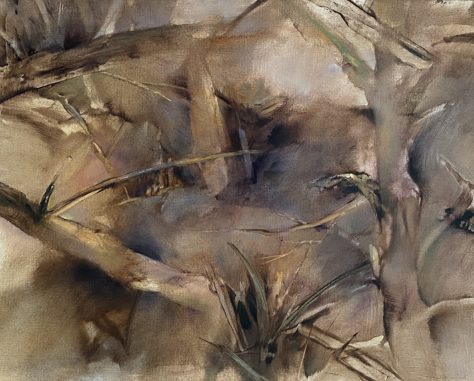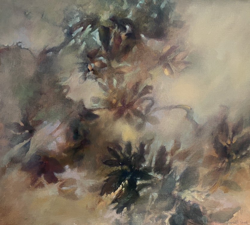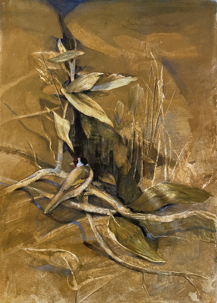 Jane Morris Pack, Wildflowers in the Spring, 2025, Gold leaf, oil, and shellac on masonite panel, 8 x 11 inches