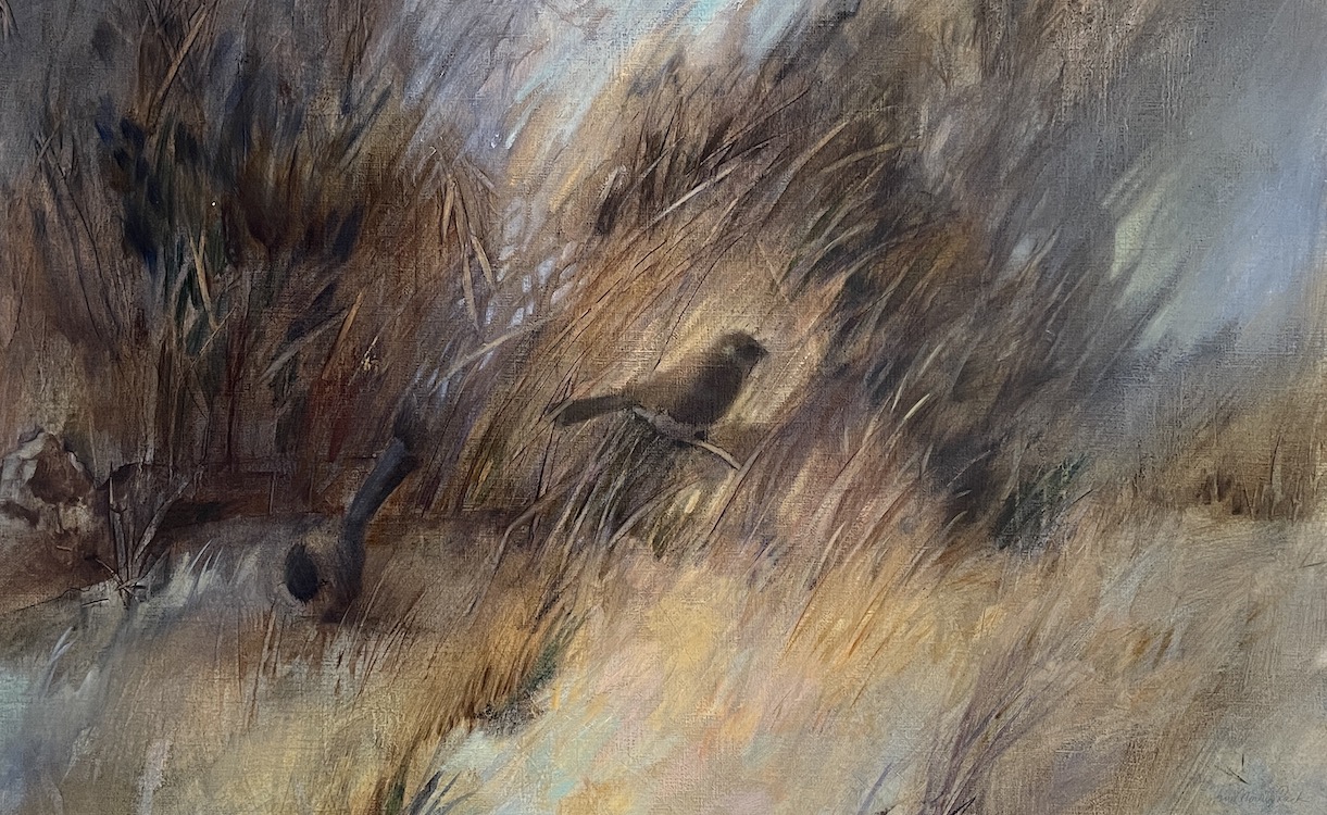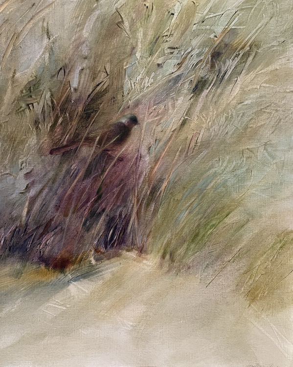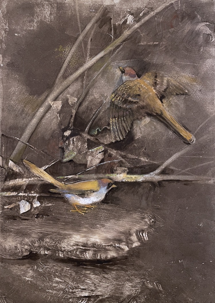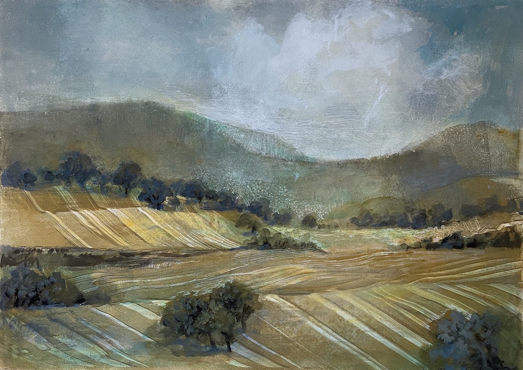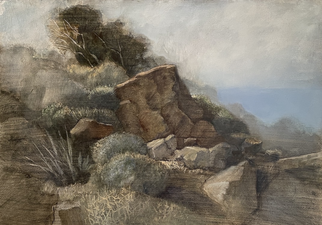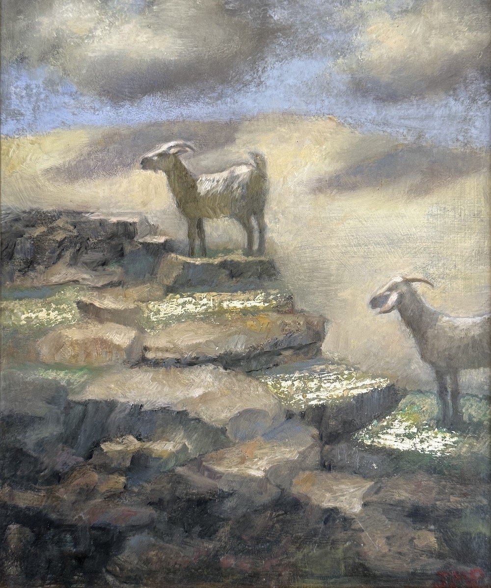 Jane Morris Pack, Wildflowers in the Spring, 2025, Gold leaf, oil, and shellac on masonite panel, 8 x 11 inches