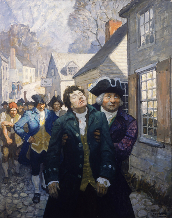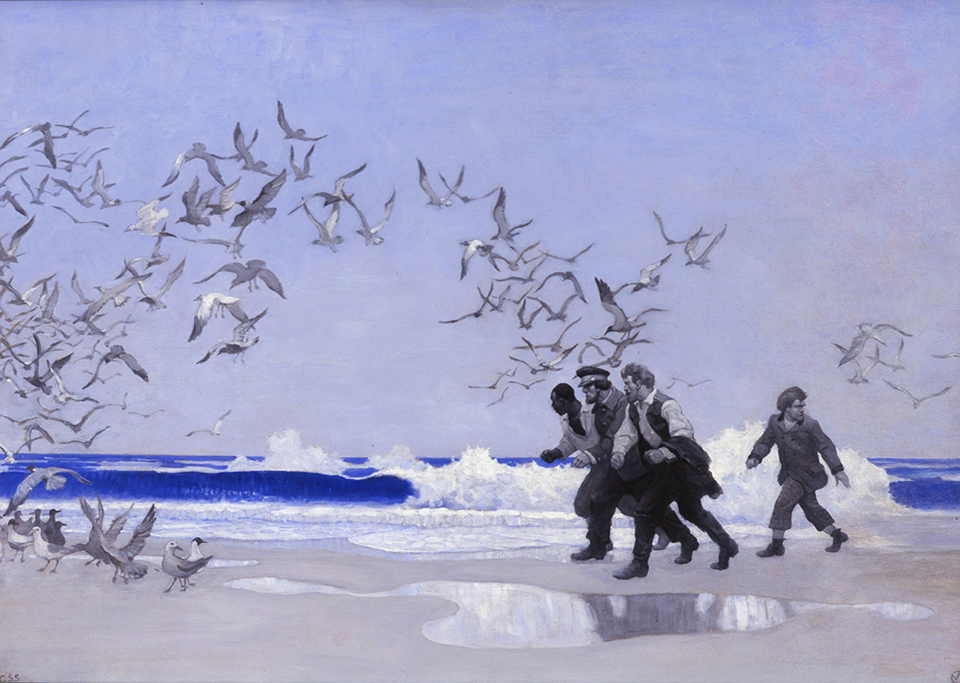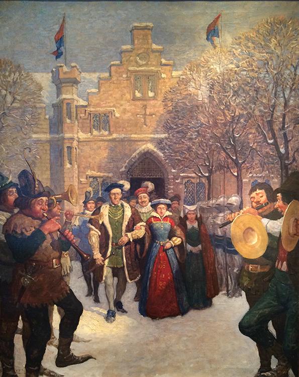 Newell Convers Wyeth was born October 22, 1882, in Needham, Massachusetts. With his mother’s encouragement, N.C. Wyeth attended several art schools – Mechanics Arts School in Boston, Massachusetts Normal Arts School, and the Eric Pape School of Art in Boston before being accepted to Howard Pyle’s School of Illustration in Wilmington, Delaware, in 1902.