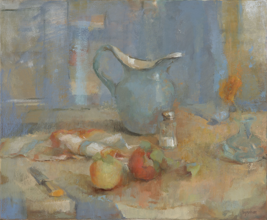 Tina Ingraham was born in Kenton, Ohio in 1947. She received her Bachelor of Science in Design at the University of Cincinnati, College of DAAP in 1970, and her MFA from Brooklyn College of CUNY in 1996. Largely influenced by her study with Lennart Anderson, a second generation student of Charles Webster Hawthorne, 1872-1930, her work matured with three years of painting in Perugia, Italy from 1999-2003. She traveled Europe studying Old Master works, mosaics, and contemporary painters that enriched her palette and informed her continued research of historical techniques. She is a recipient of many awards, including fellowships from the Guggenheim Foundation, The Milton and Sally Avery Foundation, grants from The Maine Commission for the Arts and Pollock Krasner Foundations, and residency fellowships from MacDowell Colony, Dorland Mountain Art Colony and The Robert M. MacNamara Foundation. Academic teaching includes The International School of Painting Drawing and Sculpture, Bowdoin College, Hyde School, Brooklyn College and Stephens College. Among the many seated portraits Ingraham has painted are the Myron Edward Ullman III portrait collection of thirteen paintings, and the portrait of Joshua Chamberlain commissioned by Bowdoin College. Down East Book publications include reproductions of Ingraham’s Harbor Fish Market painting “Early Snow” in Carl Little’s and David Little’s Paintings of Portland, and “Portland Pier at Low Tide” in Paintings of Maine, A New Collection by Carl Little.
