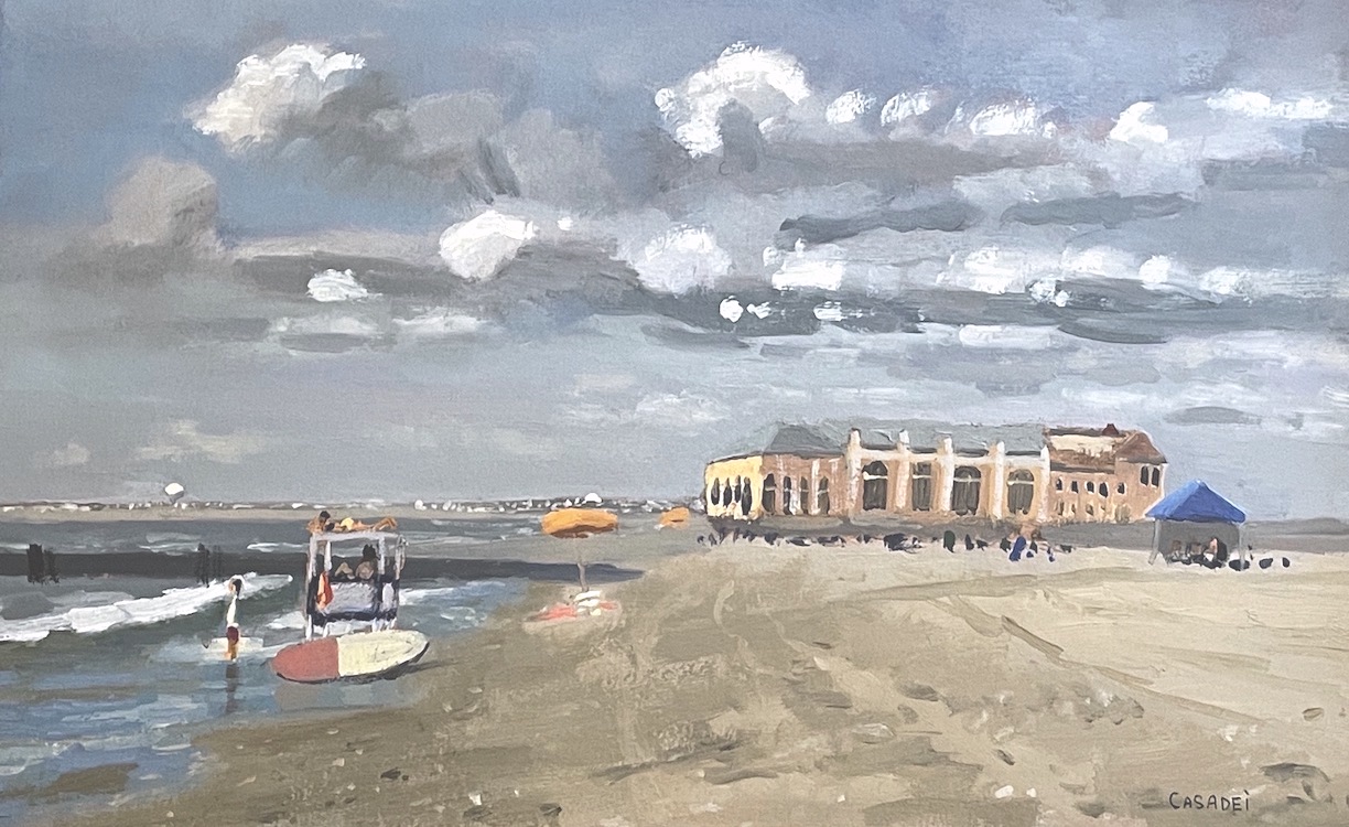 Giovanni Casadei, On the Watch, 2022, Oil on panel, 8 1/2 x 13 1/2 inches