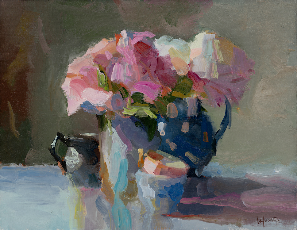 Christine Lafuente, Summer Bouquet with Cosmos, 2021, Oil on linen, 18 x 14 inches