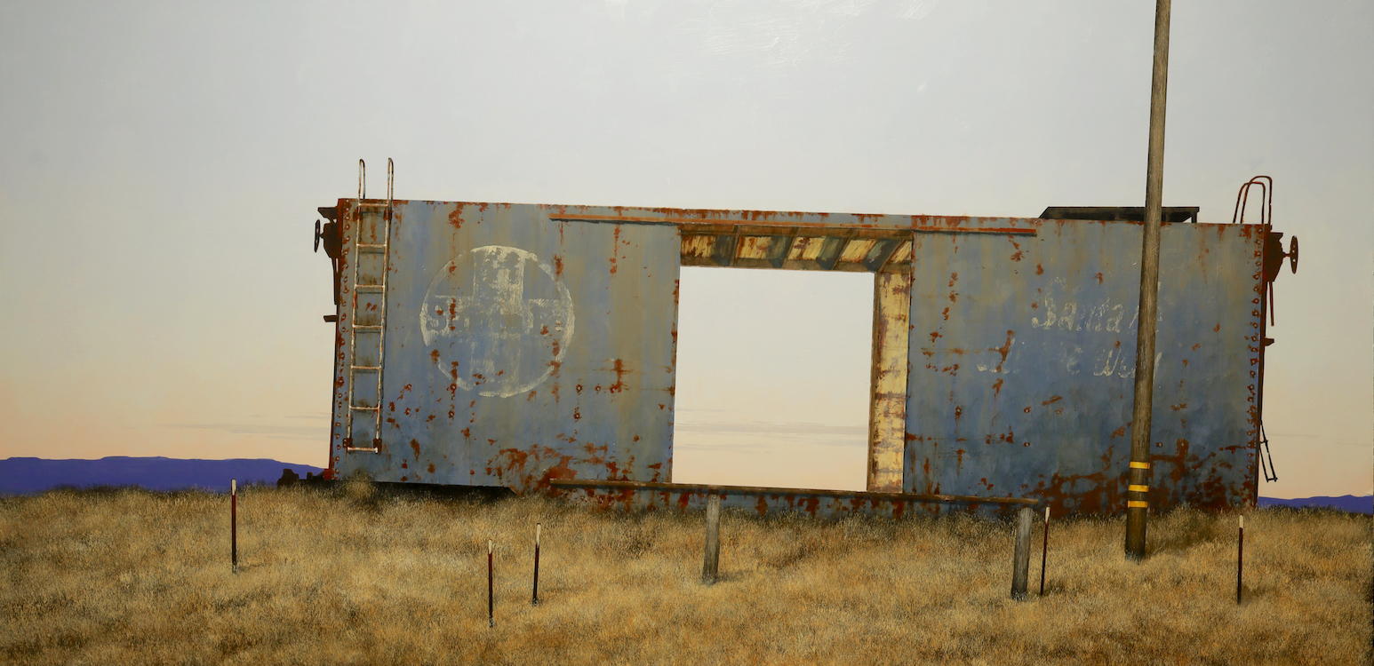 Francis DiFronzo, Western Front, 2023, Oil over watercolor and gouache on panel, 36 x 72 inchesFrancis DiFronzo