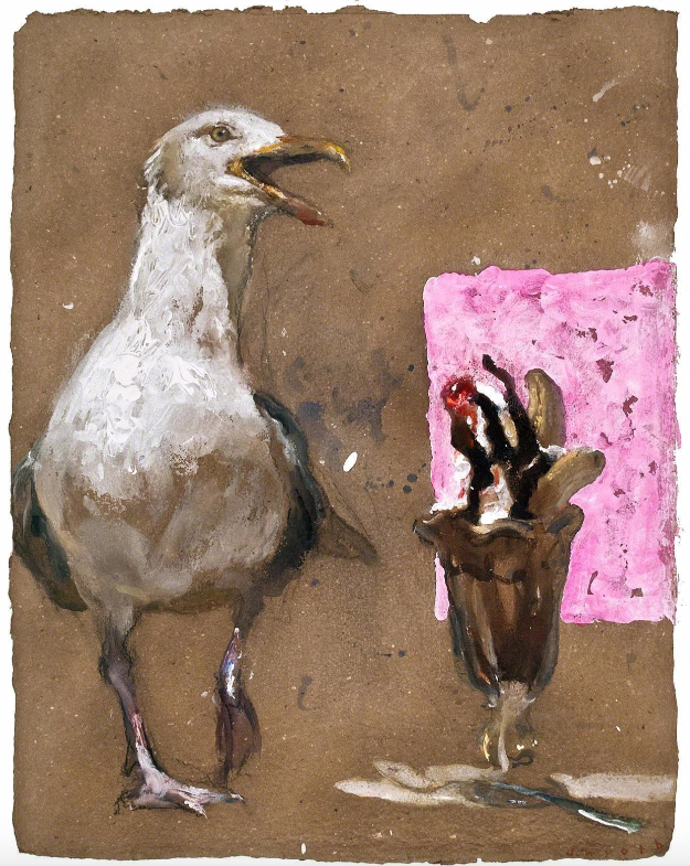 Jamie Wyeth, Banana Split, 2016, Watercolor and gesso on handwoven paper, 28 x 22 inches