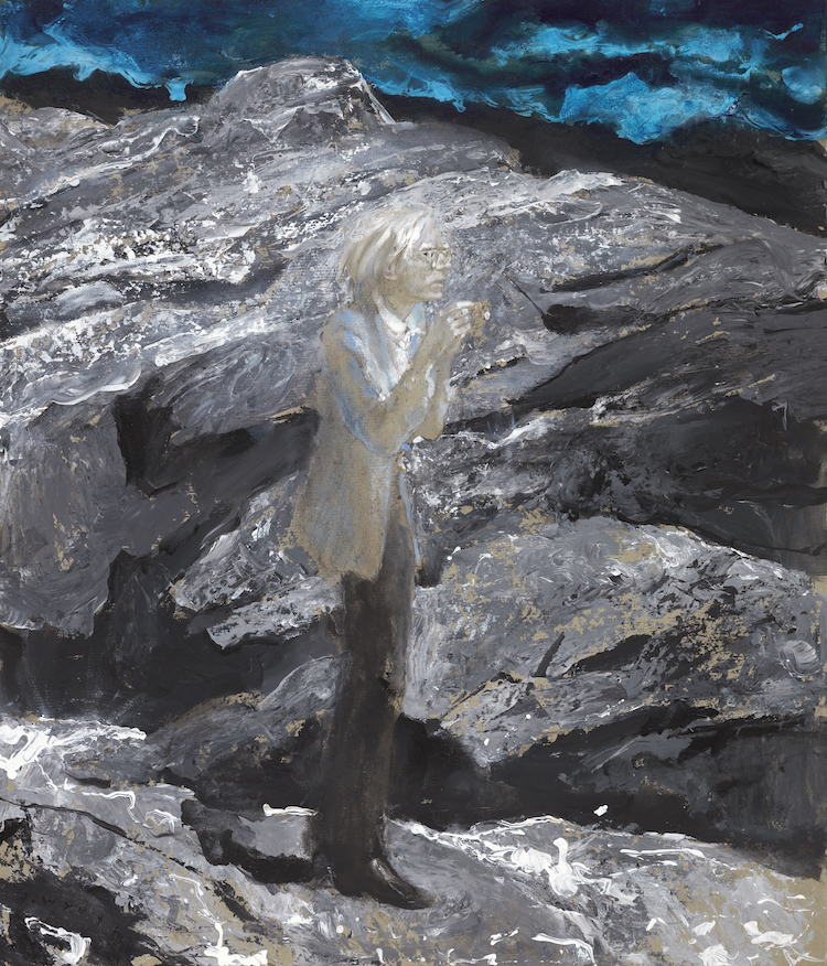 Jamie Wyeth, Goodbye, Gull Rock, 2023, Oil and acrylic on gesso panel, 40 x 30 inches