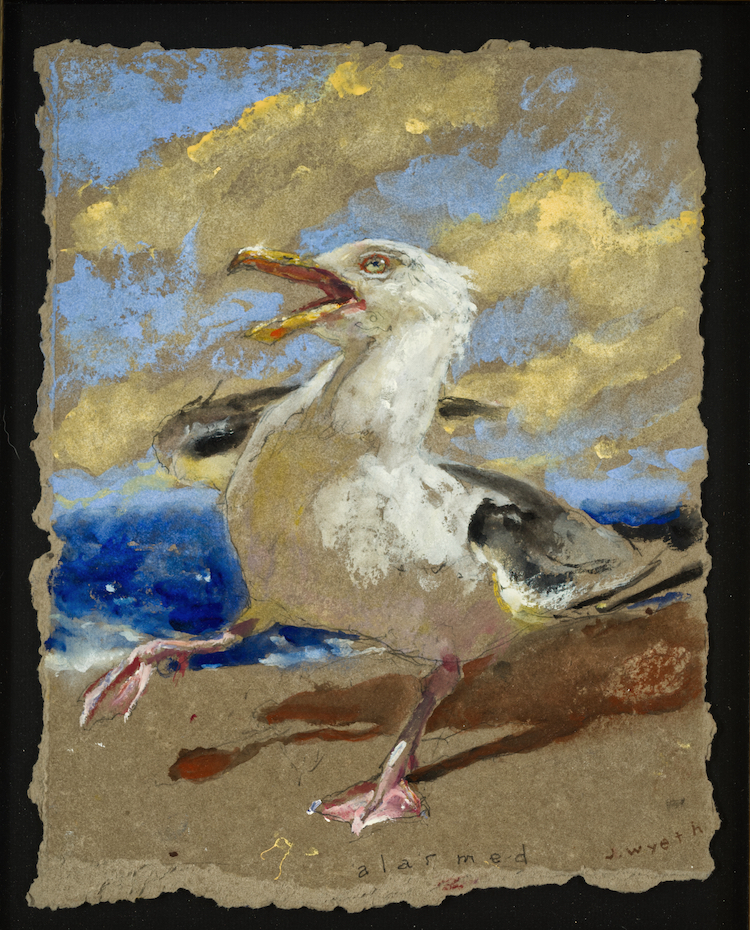 Jamie Wyeth, Alarmed, 2024, Watercolor and acrylic on hand woven paper, 16 x 12 inches
