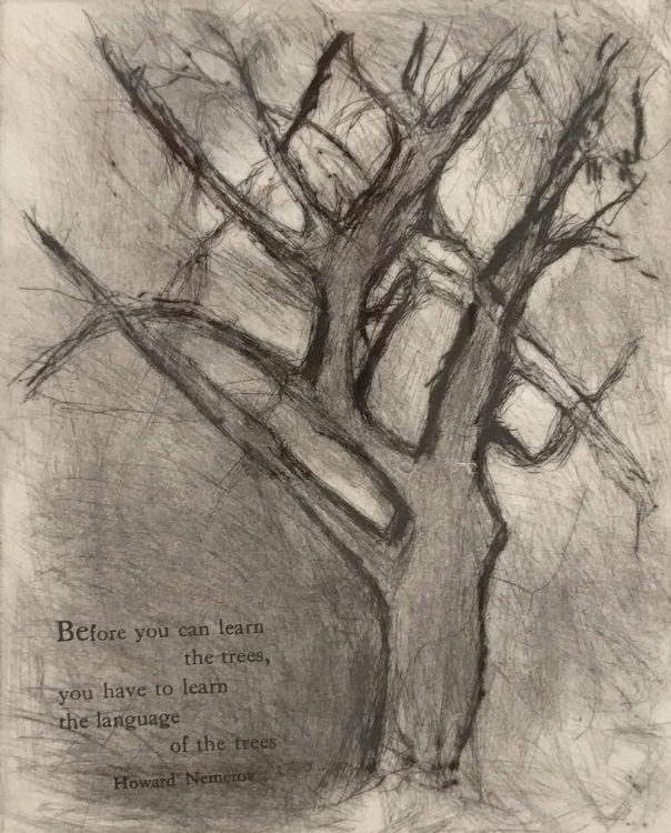 Mary Page Evans, Tree Language II, etching on paper, 8 x 10 inches