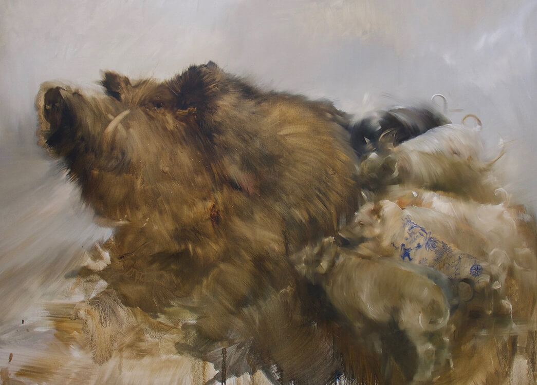 Sarah McRae Morton, The Glare in the Eye of a Hare, and the Question about a Walrus, oil on canvas, 54 x 64 inches - SOLD