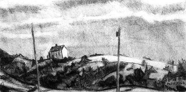 Philip Koch’s drawing Edward Hopper’s Studio, Truro, 2020, is acquired by the Maier Museum of Art at Randolph College in Lynchburg, VA. The vine charcoal drawing, 7 x 14 inches, is a study for Koch’s painting Edward Hopper’s Studio, Truro (below).
