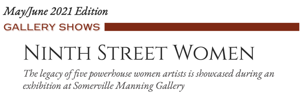 “Inspired by the book Ninth Street Women, written by Mary Gabriel, the upcoming exhibition Ninth Street Women and Their Legacy at Somerville Manning Gallery delves into the artwork of Lee Krasner, Elaine de Kooning, Helen Frankenthaler, Joan Mitchell and Grace Hartigan. In the exhibition the works of these five historic American women artists will be placed alongside art by five living artists —selected by the gallery—who are inspired by the Ninth Street Women.”